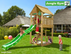 Játszótér Jungle Cabin ideális megoldás ott, ahol szükség van a helytakarékosság és még így is rengeteg szórakozási lehetőséget a gyermekek számára. Leszállópálya fedezte fix tető, csúszda, és alatta a platform egy homokozó.Tartalmaz: egy fedőlapot a homokon, tető, nettó homok, sárga fogantyúval megfogja a létra Stupak, zászló majom sapkák, kötőelemek, fúrók, horgonyok, utasítások az összeszereléshez + dokumentáció, fa gerendák, csúsztassa 300 cm.