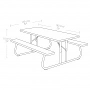 Amely tartalmaz egy piknik asztal és két pad . Az acél kombinációja tartókeret és rendkívül tartós UV stabilizált polietilén (HDPE). Idôjárás-. Műanyag nap nem sárga vagy törékennyé válik.